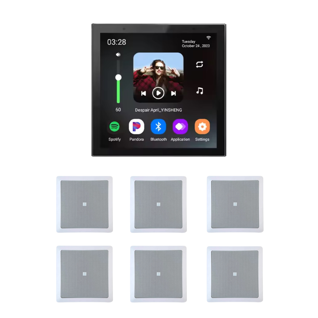 KIT AMPLIFICADOR DE PAREDE 50W (25+25) WIFI COM SPOTIFY INTEGRADO - YOUTUBE - PLAY STORE - ESHARE - BLUETOOTH - ANDROID 11 COM BELÍSSIMO ACABAMENTO TELA TOUCH SCREEN 480x480 COM O JBL 6FR1Q Ambiente Som Teto Parede Áudio oferece um som natural, com grande clareza e precisão, que é uniformemente disperso. Um alto-falante que garante potência e qualidade por igual na reprodução de conteúdos multimídia + 6 ARANDELAS JBL 6FR1Q QUADRADA BRANCA