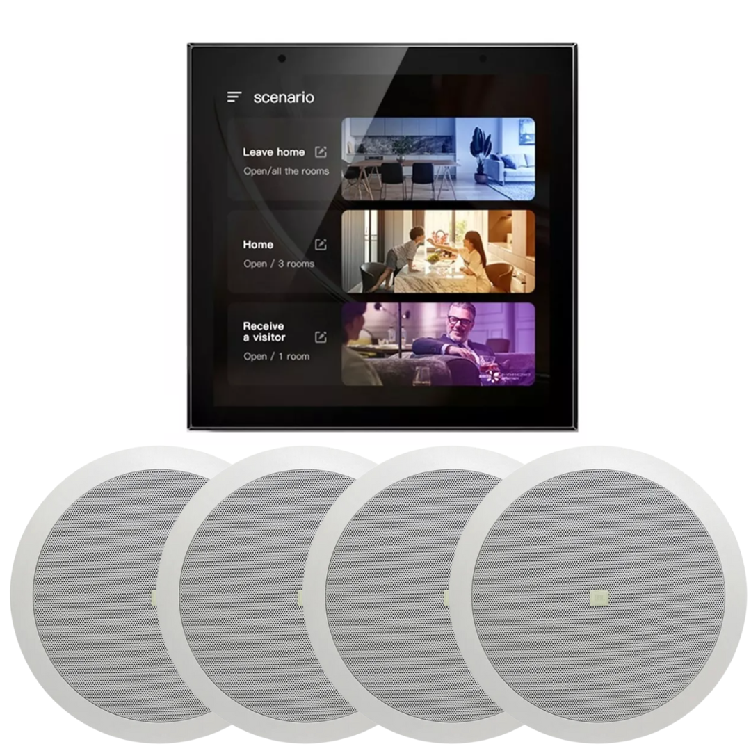 PAINEL PARA CONTROLE EQUIPAMENTOS TUYA COM SAÍDA DE 50W PARA ALTO-FALANTES COM ACESSO A REDE WIFI E SPOTIFY EMBUTIDO COM TELA 4,0".